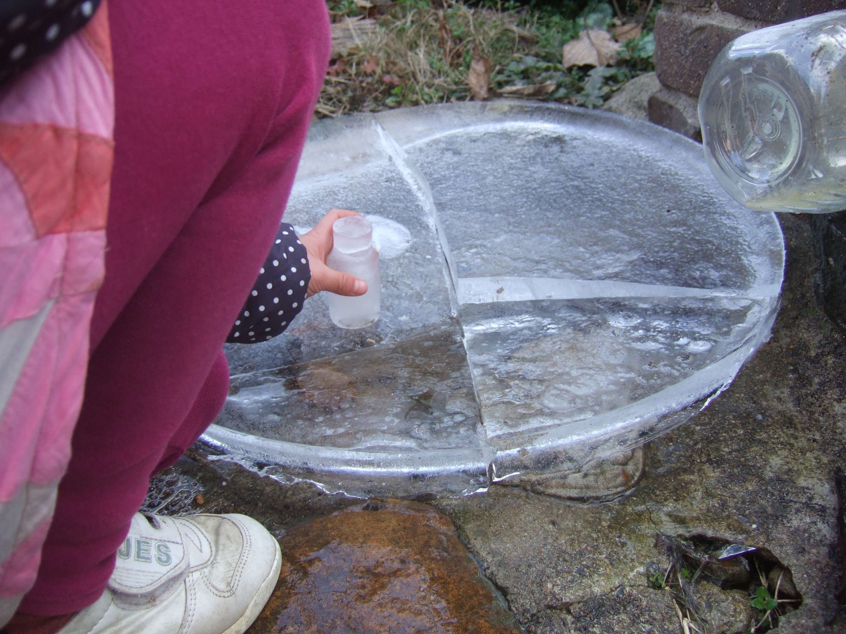 タライに張ったでっかいこおり。