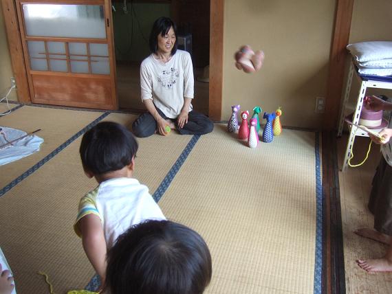 朝の会では自分に回ってきたボールをお友達に転がして渡します。
