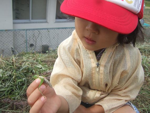 「食べたい」とハンターの眼差しでイナゴを探します。