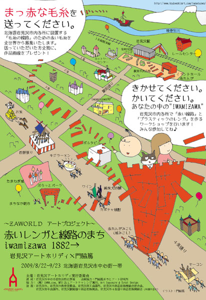 北海道岩見沢市で行われるアート・プロジェクト「ZAWORLD」への出展作「赤いレンガと線路のまち」のフライヤーができあがり、今日、入稿しました。