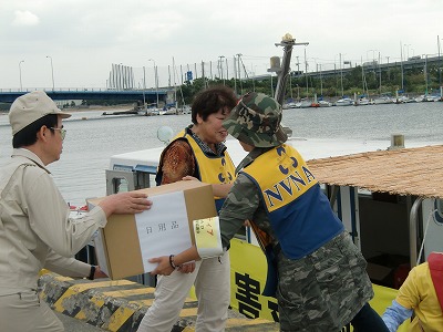 そのあと、ボランティアの皆さんは、岸壁に着いた船から救援物資