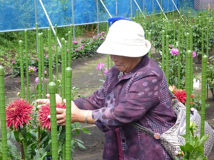 まず、五戸町の「ひばり野ダリア園」で160種もの美しいダリアを観賞しました。参加者からは、「ダリアが好きで、ずっと庭で育ててきたけど、津波で全部流された。ここでたくさんのダリアを見せてもらって、何か懐かしい気分になれて嬉しい」という声も聞かれました。続いて訪れた新郷村役場では、村長からご挨拶を頂き、特産の乳製品をプレゼントされました。「かつらな峡」というところでは、イワナ焼きとひっつみ(南部地方の料理)を頂き、新郷温泉館で温泉にも入れて頂きました。