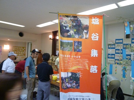 その中のコーナーの1つに「塩谷集落」の旗が掲げられ、塩谷集落から参加された11名が、あの当時の写真や刈羽村との交流の証を展示されました。到着するやいなや、抱き合って再会を喜び、さっそく交流の1つのメニューとなってきた手芸を一緒に始める参加者もおられ、展示に加えて交流の証が感じられました。中庭には山古志のアルパカも愛嬌をふるまっていました。駐車場を利用した様々な屋台にも、刈羽村社協さんが育んで来られたつながりが現れていました。地元の福祉施設のお店などに加わって、岩手県野田村の屋台がありました。いつもお世話になっているチーム北リアス現地事務所長の貫牛さんとともに、漁師2名、椎茸農家1名が大量のホタテ貝と椎茸、そして、「野田塩」をはじめ地元の特産品を持ってきて下さり、炭火で焼いて振る舞われました。獲れたてのホタテ貝と立派な椎茸のあまりの美味しさに、午前中に完売。野田村の方がホタテと椎茸を焼いている屋台で、刈羽村の方、塩谷集落の方、そして、大阪上町台地の方が談笑する写真は、今回のイベントを象徴するものだと思います。