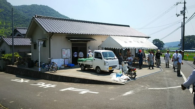 次に、倉敷市の隣の矢掛町に行きました。災害ボランティアセンターでは、把握しているニーズとボランティア活動とがバランスがとれているということでした。しかし、災害ボランティアセンターですべてのニーズを把握しているわけではないと仰っていました。お話を伺ったあと、被害の大きかった中川地区を訪問しました。日妻公民館前にはテントが張られ、住民の方々が話をされていました。そこへ「ボランティアに来ました」とお伝えすると、「おぉボランティアさんか。お〜い、ボランティアさんが来てくれたよ」と大きな声で皆さんに伝わりました。早速、町内会長が出てこられ、被害の様子を撮った大量の写真を並べて、「これだけ大きな被害があった。あそこに見える地区が完全に水に浸かった。本当に大変。でも、誰にも知られてない。報道がないから・・・そして、ボランティアも来てくれない。地域の皆で助け合ってる」ということでした。NVNADをずっと支援して下さっているフェリシモさんの有志の皆さんから届けていただいた物資を持参していましたので、見て頂いて必要な物をお渡しし、また、さらに必要な物については相談をさせていただきました。