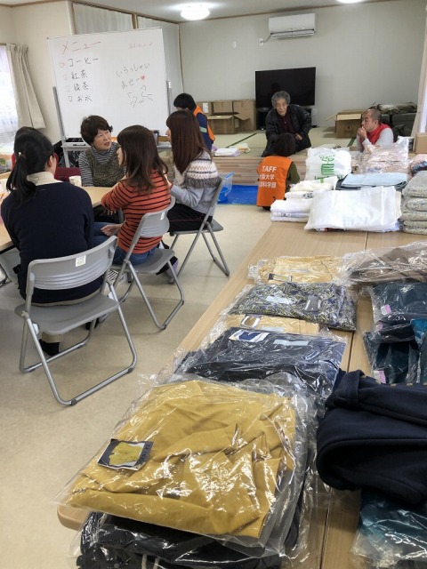 続いて、真備のまきび荘を訪問しました。避難者が0になったことを受けて片付けておられるNPO法人九州キリスト災害支援センターのY看護師に会ってお話を聴きました。まきび荘は、宿泊施設ではないため、今後は、出られた方々を含めた地域支援に移行するとのこと。ネックウォーマーと靴下スリッパをお渡しし、今後また連携しつつ動ければと話しました。