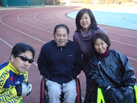 写真中央が千葉さん、右の車椅子が私渡辺、後ろが福田さん、
