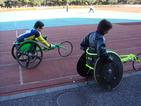 の一言で、車椅子陸上体験をさせてもらうことになりました。
