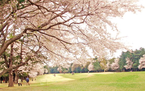 我孫子ゴルフ倶楽部のご厚意で、コース内の見事な桜を楽しめます。