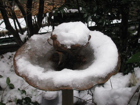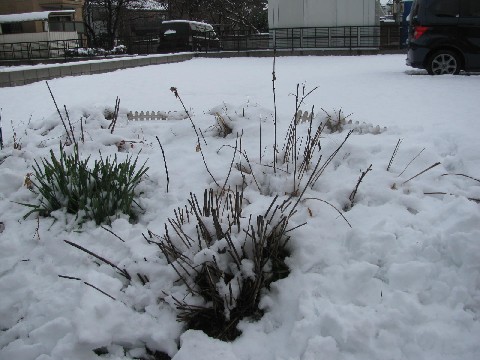 翌朝、一面の雪だが朝に雨が降り雪が重い
