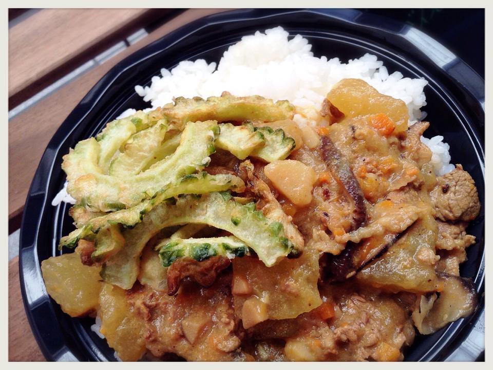 重ね煮カレーをアレンジ ゴーヤフライものっけます^o^