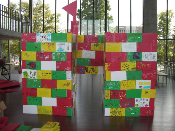 「アートみこし」、駅にやって来る方たちからみえるようで、みなさん見上げて指さしています