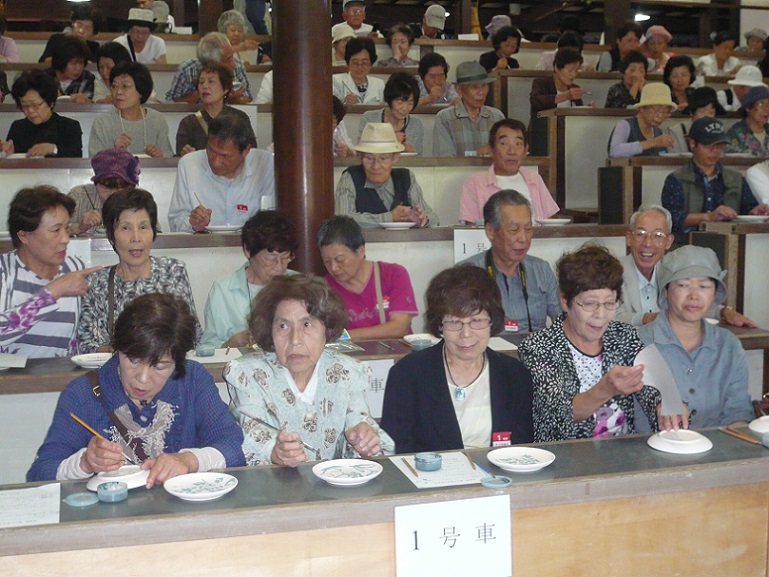 東成区老人福祉センター主催で彦根城下ウォーキングと水茎焼き絵付け
