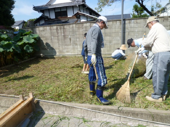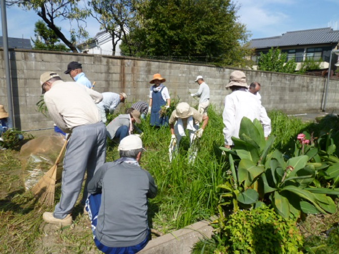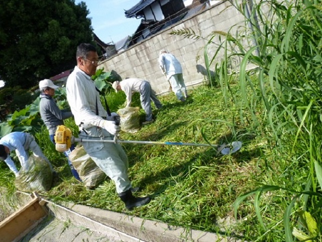 朝から全員で草刈りを行いました。
