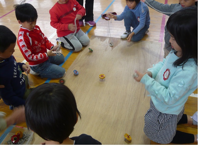 コマの持ち方、ヒモのかけ方、ここまでが一苦労。
