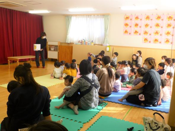 絵本が始まる前に、手遊び歌を歌ってくれました。