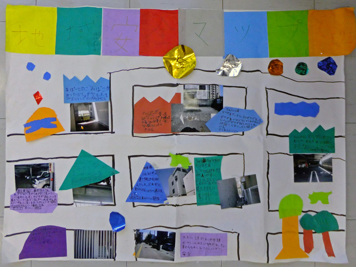 こちらも比較的高学年が多かったチーム。地図はシンプルですが、一番重要なコメントに、本当に力を入れたことが伝わってきます。地域安全マップは、「コメント」が一番重要で地図はおまけのようなものです。それを十分に理解して頑張ってくれた様子が伝わってくる一枚です。短い時間で調査量も多いです!!暑い中頑張りました。