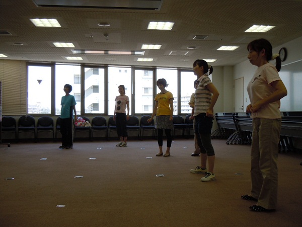 ストレッチのあとは、軽くステップを踏みながら身体を動かします。