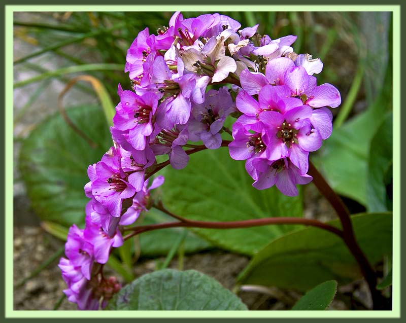 今回の写真は「ヒマラヤユキノシタ」です。名前からすると冬の花のようで、実際にも、薄っすらと雪が積もった時に雪ノ下にこの花のピンク色が見える眺めはいいものです。