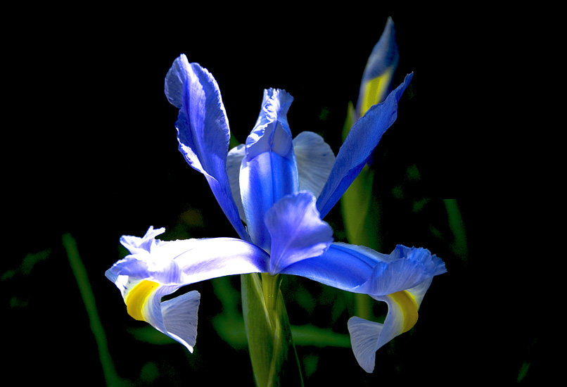 アイリスの花がもう咲き始めました。昨日の昼下がり日差しのある内にと思い写した時は、一輪が朝顔の蕾のような姿でしたが、今日の雨の中、僅か一日で立派に開花していました。