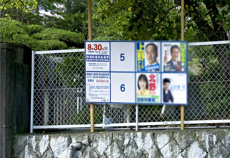 夕食を済ませた8時からテレビの画面は見えませんが声だけを聞きながら今日の写真を作成し始めましたが、今回の政権交代を予想して作朝写して置いた選挙の写真を使うことにしました。