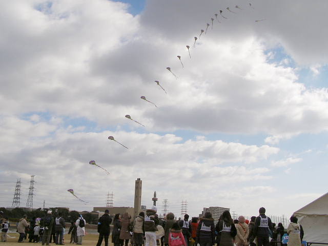 (%晴れ%) 凧あげ大会の様子−4(連凧)
