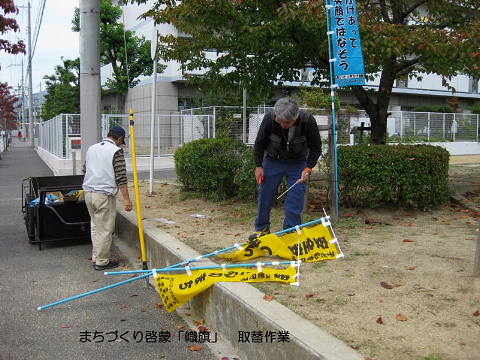 以上九箇所の幟旗、25本の取替作業をお昼過ぎまで