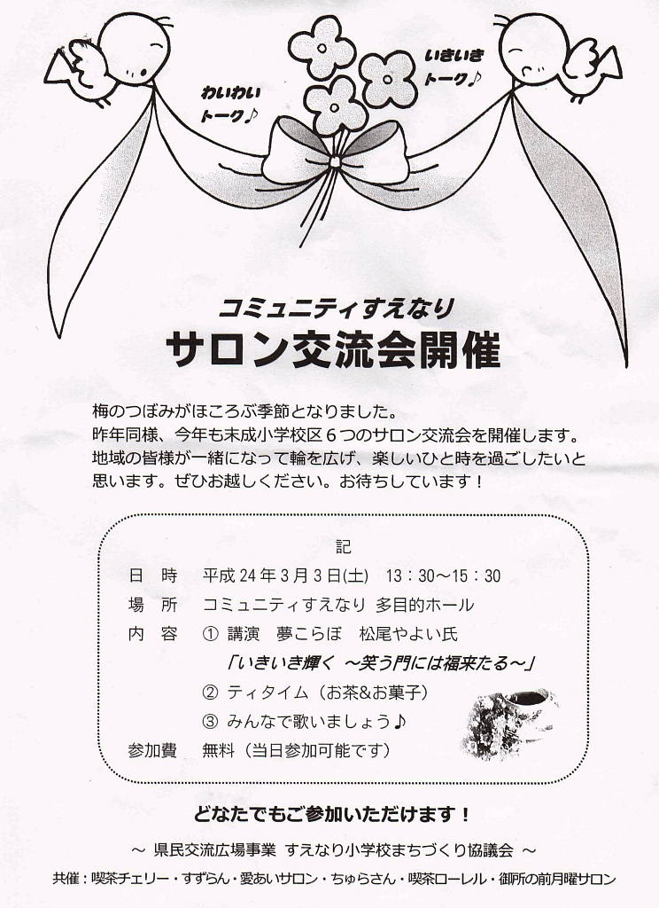 来る3月3日(土)午後1時30分から末成小学校多目的ホールにて
