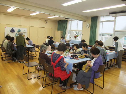 (%ニコ女%) お喋りしながらの袋縫い作業−1