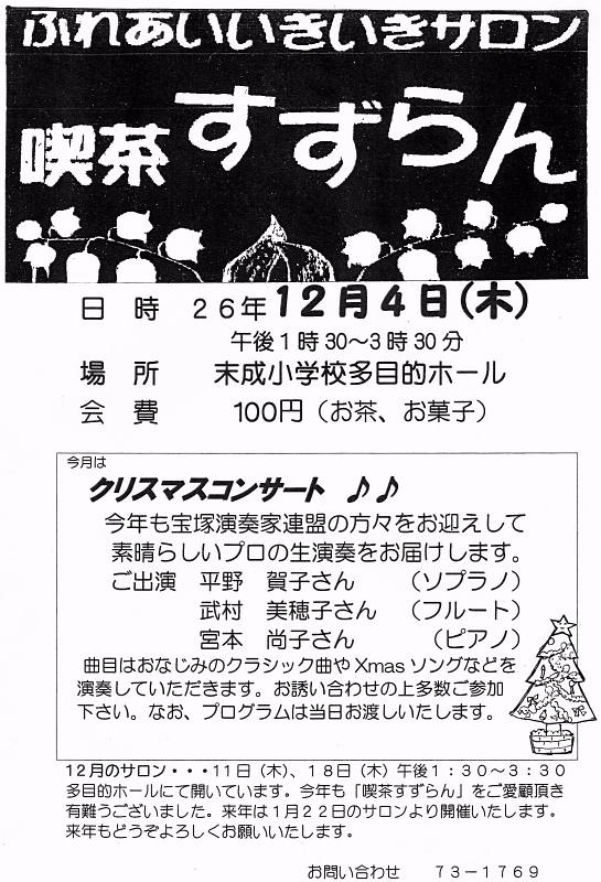 来る12月4日(木)午後1時30分から末成小学校多目的ホールにて、