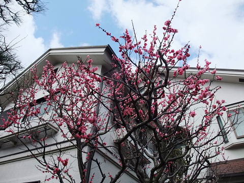 穐山さん宅のお庭の「紅梅と枝垂れ梅」が咲きました。