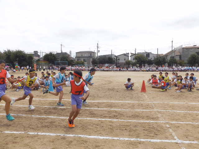 各学年のリレー・徒競走、表現、団体競技が元気に演じられ、