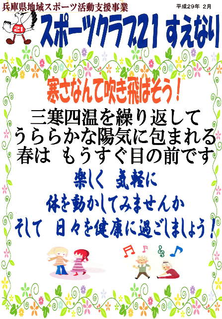 スポーツクラブ21すえなりの 「2月度活動予定表」と「チラシ」 を掲載します。
