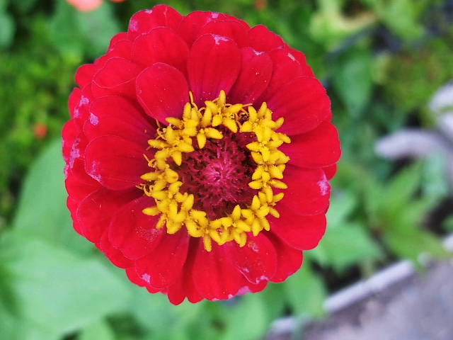 百日草の花に抜け殻がしっかりとしがみ付いていました。