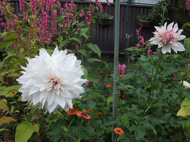 台風の被害から立ち直ったダリアの花が綺麗です。