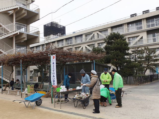 PTAと福祉部が準備した「ぜんざい」が振舞われ、