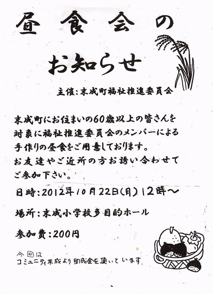 末成町福祉推進委員会主催「昼食会」のお知らせ