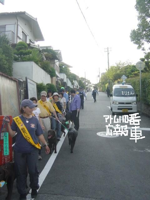わんわんパトロール隊として(犬の散歩を利用して)ひったくりや空き巣などの防犯活動や救援活動に活躍している様子を、行政・阪神北県民局・宝塚警察の方に随行していただき、防犯活動のキャンペーンを兼ねて、パトロールを行いました。