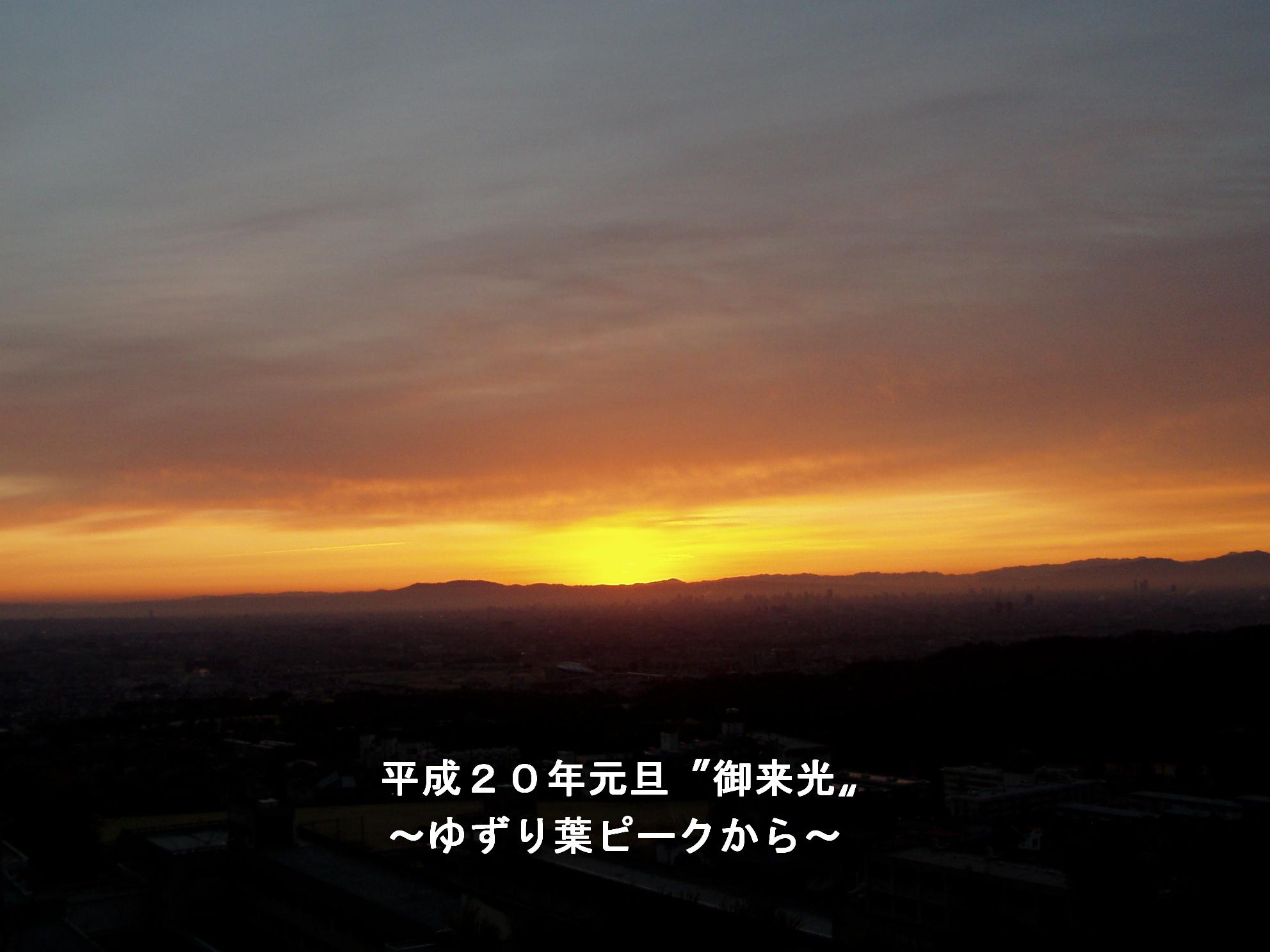 (%晴れ%) 2010年元旦!!住宅街にある 標高234mの 「ゆずり葉ピーク」 から御来光をと。残念ながら生駒連山には雲がおおい、たれる厚い雲の中淡い期待をしたが、ご来光が見えなかった。 (%晴れ%)