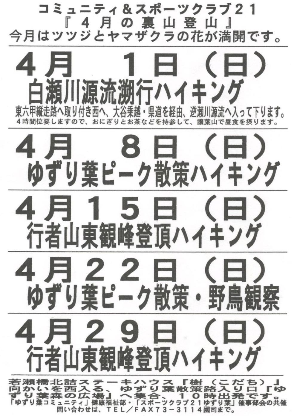(%晴れ%)(%晴れ%) 4月22日(日)の散策ハイキングは、バードウォッチングします!!