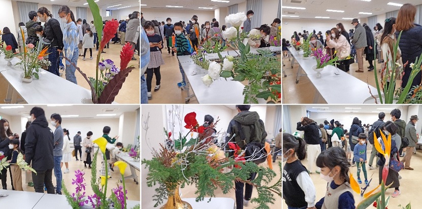 (%ニコ女%)(%ニコ男%) 「ゆずり葉いけばなこども教室」 は、令和4年12月10日(土)、宝塚市立中央公民館で毎月活動している子どもたちの、いきいきと個性あふれる、素晴らしい、毎年度1回開催の18回目の作品展を開催しました。平成17年(2005年)から文化庁の支援を受けて毎月活動しています。18年目を迎えました。文化庁の主旨は、日本の長い歴史と伝統の中から生まれ、守り伝えられてきた伝統文化を、将来にわたって確実に継承し、発展させるとともに、子どもたちが歴史、伝統、文化に対する関心や理解を深め、尊重する態度を育て、豊かな人間性を涵養することを目的としています。現在この教室は、複数小学校区の小学生、それに中学生と高校生までが広く参加されています。四季折々の花と触れ合う時間を大切に元気に楽しく活動しています。
