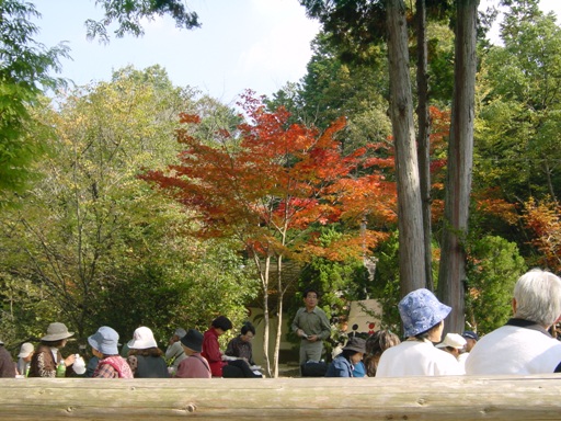 収穫祭が行われている「西谷ふれあい夢プラザ」では、野菜や柿、栗などの販売・餅つき・菊展・野菜の品評会などの催し物があり、沢山の人でにぎわった。昼食は弁当が用意され、「少年自然の家」の屋外で紅葉を見ながら頂く。午後は近くの農園に出かけ「黒豆の枝豆狩り体験」をして2株お土産として頂き、途中、「ダリア園」に立ち寄り宝塚駅へ。天候に恵まれ、「秋の自然を満喫」。これこそが「スローライフ」だった。