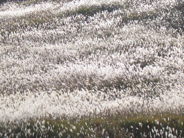 (%晴れ%)3日祭日は天気快晴、絶好の撮影日よりでした。峠を越えたところで高原がひらけて、全山にススキの穂が波打つ壮観な景色です。