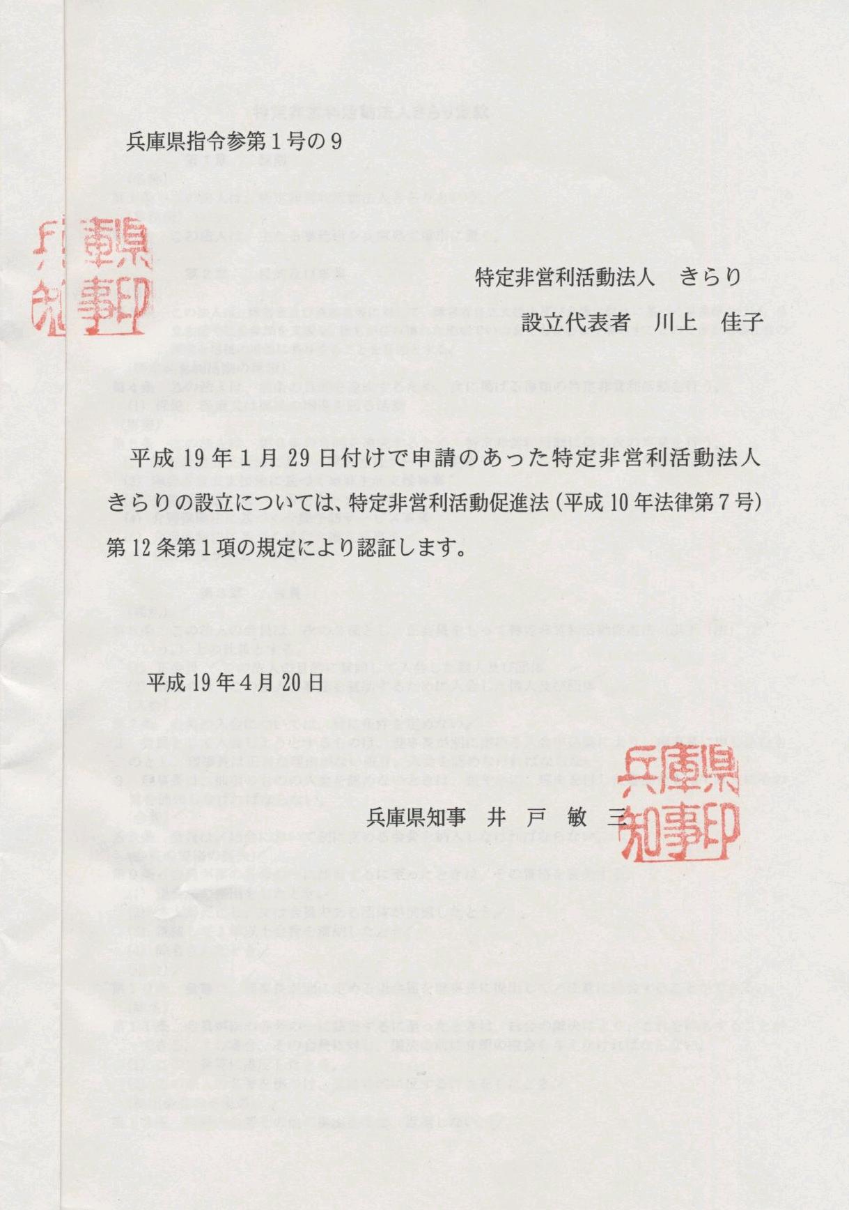 (%ハート%)(%ハート%) 設立認証書が交付され県庁から 「おめでとうございます!!」 と声をかけられ、川上理事長思わず感激!!
