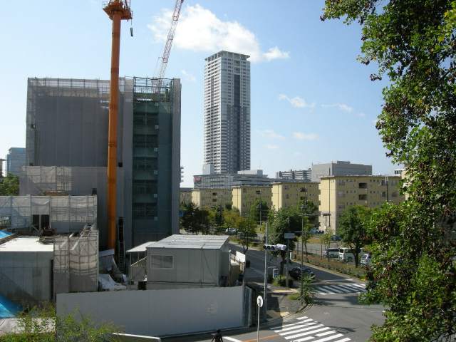 住区の中央部を南北に貫く幹線道路沿いに、高知県の物産販売や木造住宅ショールームの機能をもった”とさ千里”がありました。その敷地と隣接地には、現在、分譲マンションが建設されています。背後に、千里中央地区に建設された50階建てマンション”ザ・千里タワー”が見えました。