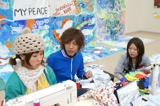 まん中:みずたま荘 縫い物専門 モッツくん (toPスタッフ)