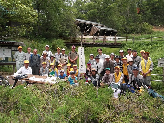 午前中ちゃんと確認出来なかったアリマウマノスズクサは、昨年一本しかなかった場所に13本?ほど見受けられ、花も蕾も見つかりました。この草はジャコウアゲハの幼虫の餌だとか・・将来この貴重な蝶も見られるようになるかも・・と気に早い声も会員から出ましたが、さらに花を確認しながら本当にアリマウマノスズクサかどうか、追跡調査することにしました。