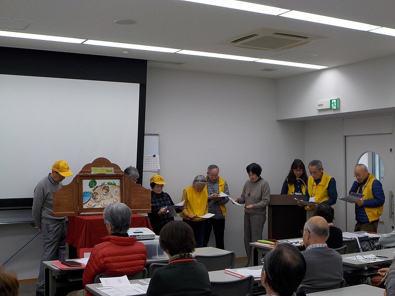 パワーポイントを使い松尾湿原、ピカピカランド、美化活動、環境学習の4項目について森川さんがやさしく、わかりやすく説明され、皆さんしっかり聴いて下さいました。