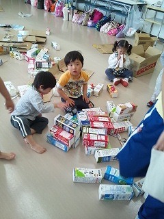 ダンボール電車・新聞紙の剣・新聞パンチなど・・・自分たちであそびを考え始め、楽しく元気に活動しています(%笑う女%)