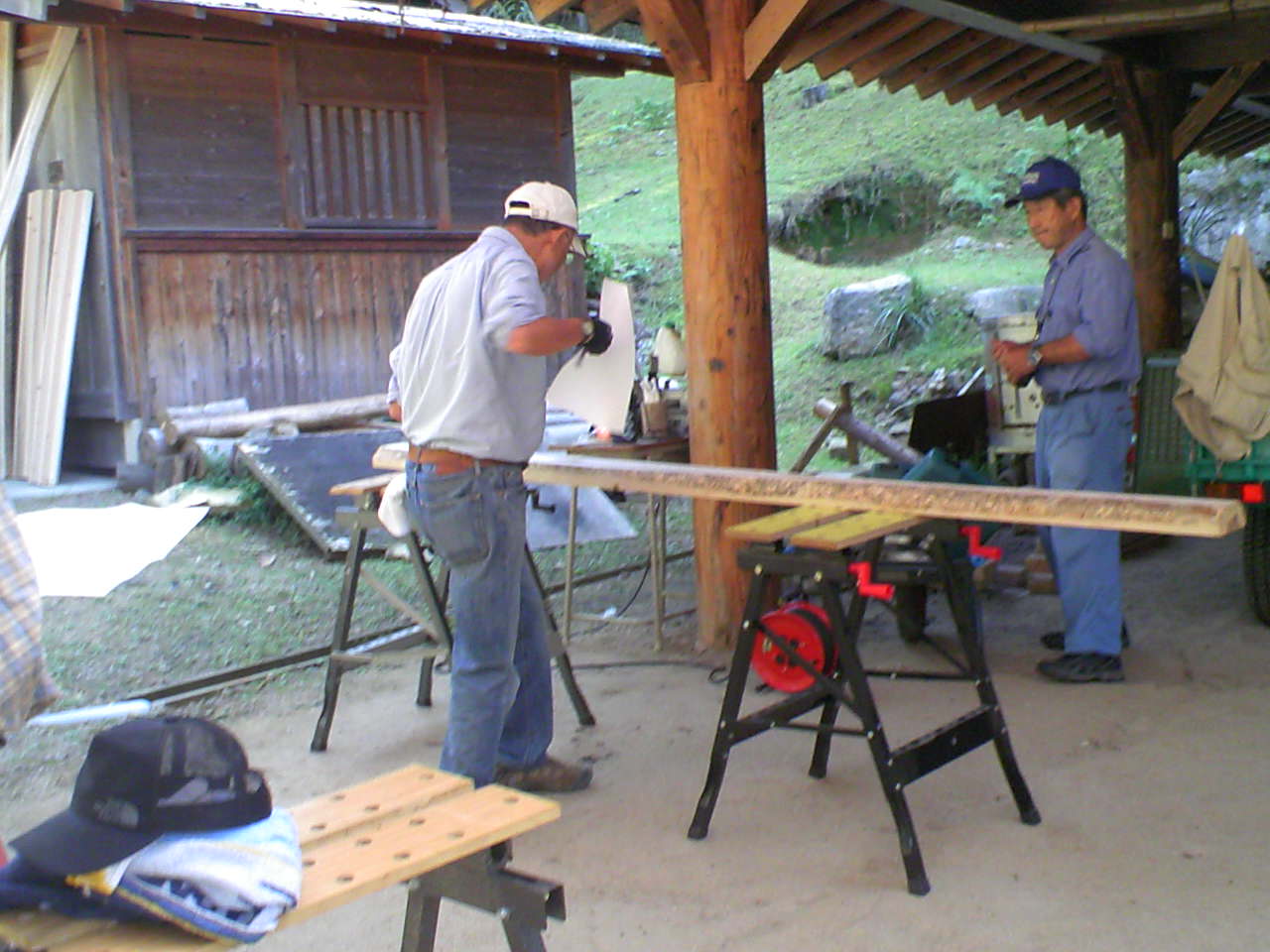 本来であれば、5月に間伐材の切り出し、皮むき、背割り作業があったのですが、新型インフルエンザの影響で中止になっていました。