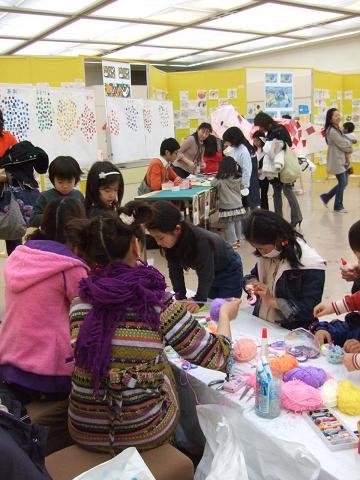 アーティストのお姉さんやお兄さんと一緒に作品を作るワークショップも大盛況!
